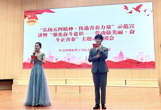本网消息 5月27日,艺术学院团总支在X6报告厅举办“弘扬五四精神·传递青春力量”示范宣讲活动暨“强化奋斗意识—劳动最美丽·奋斗正青春”主题示范团会。艺术学院党总支副书记胡增裕及学院师生代表130余人参加了此次活动。