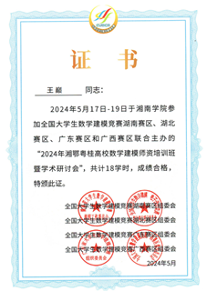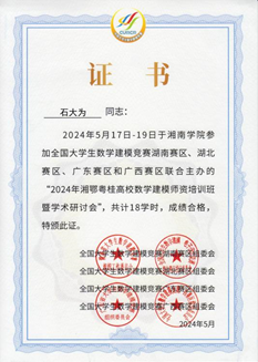 本网消息 5月17日-19日,湘鄂粤桂四省高校数学建模师资培训班暨学术研讨会于湖南省郴州召开。来自湖南、湖北、广东、广西、江西五省240余名教师参加了本次培训。威尼斯官网数理学院王巅、石大为老师参加了此次培训会议。