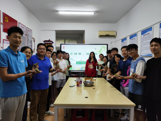 在包粽子环节,老师同学齐上阵,纷纷拿起粽叶学习体验包粽子。折粽叶、填糯米、加红糖、包裹成形,再用细绳扎紧。有的同学是第一次包粽子,虽然手法生疏,但兴奋和认真的劲头丝毫不减,有的同学相互协作,共同完成人生中第一个粽子。少数民族学生格桑旺姆表示:“活动是一次很新鲜的体验,不仅学习了端午节的文化,更感受到计算机学院的温馨。”青青的粽叶,饱满的糯米,一个个粽子承载了计算机学院大家庭的浓浓温情。