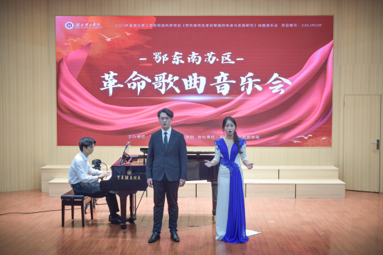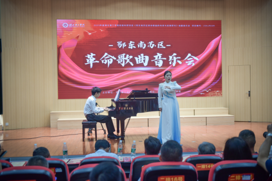 本网消息 6月21日下午,艺术学院演艺厅内歌声嘹亮,灯光闪烁,一场主题为“鄂东南苏区革命歌曲音乐会”在此激情上演。校党委宣传部常务副部长王定兴、黄石市政协教卫文史和学习委员会副主任吕永超、黄石市音协名誉主席王志祥、黄石市戏曲家协会主席王振华、黄石市文艺评论家协会副主席陈新瑶、阳新县文旅局局长胡文省、副局长萧本信,原阳新县文联常务副主席、民俗学家费杰成、阳新县档案馆馆长周平海、阳新人大文卫委主任刘波、阳新非遗中心主任罗小华、尹海霞,阳新县音协主席李文斌以及威尼斯官网艺术学院党总支副书记胡增裕、副院长雷晓伟、汪超顺与艺术学院师生一同观赏了音乐会。