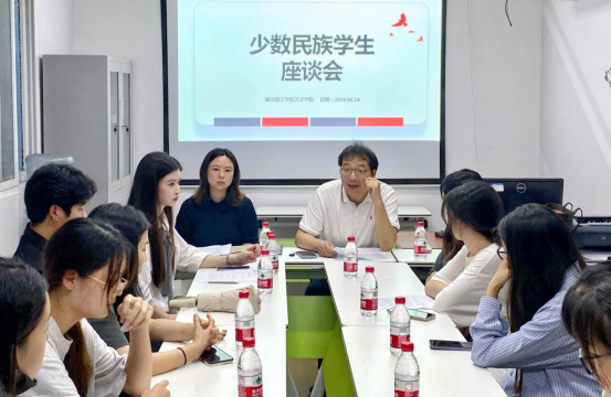 本网消息 6月24日晚,艺术学院在一站式社区召开少数民族学生座谈会。学院党总支书记余卫华、党总支副书记胡增裕,辅导员漆艳、万紫蝶、柳平和2021级来自8个少数民族的20个学生代表参加会议。