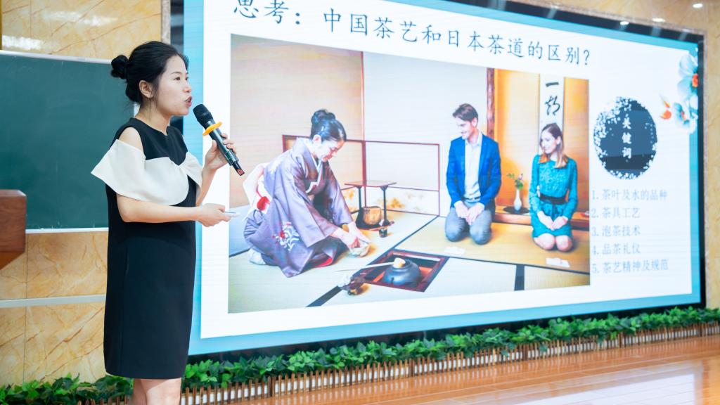 李心梅老师在《大学日语》课程中讲述了“日本茶道的前世今生”,通过观看茶道相关视频,为学生呈现场景丰富、内容翔实、思政目标明确的茶道体验。学生通过了解日本茶道,进一步思考日本茶道和中国茶艺的关系,并通过学习中国茶道的种类、历史,提升学生对中华文化的认同感和自豪感,培养学生传承中华文化的责任感。