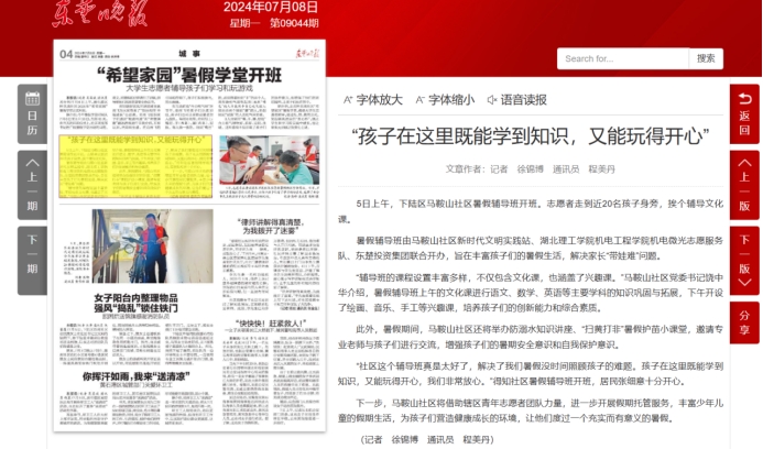 相关工作受到了《湖北日报》、《黄石日报》和《东楚晚报》的关注。