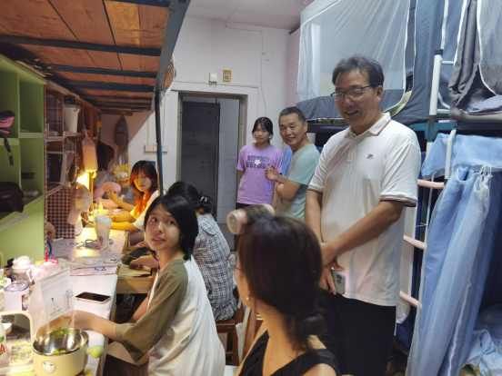 本网消息 9月8日晚,艺术学院党总支书记余卫华、院长刘满中带领学院全体领导班子、24级各班班主任、辅导员一同走访新生宿舍,以更好了解新生状况,帮助新生尽快转换角色,适应学校生活。