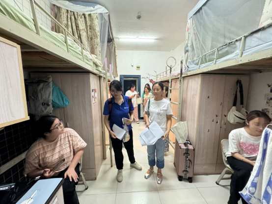 在查寝过程中,老师们积极鼓励2024 级的新同学们尽快适应大学生活的节奏,引导他们尽快树立明确的学习目标并找准前进的方向,尽早对大学生活做好规划。同时,老师们反复强调安全问题的重要性,提醒同学们在日常生活里务必注意财产安全、用电安全以及人身安全,特别是强调了交通安全,要时刻谨防诈骗,严格遵守学校的各项规章制度。此外,老师们还叮嘱同学们要相互包容、彼此交流,共同营造一个温暖和谐的相处环境。当走访毓贤学生公寓时,由于该公寓是新建宿舍,学工办贴心地为每一位同学准备了活性炭包。此次查寝活动得到了家长的高度认可,一位陕西籍家长表示,把孩子送到理工学院很放心。