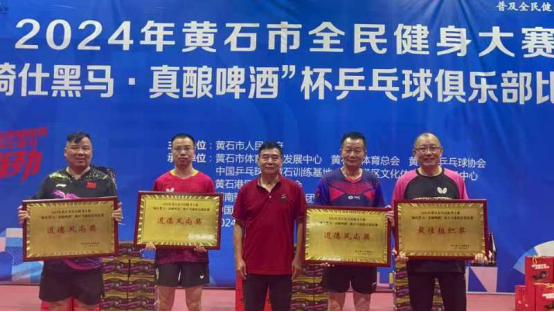 本网消息 日前,2024年黄石市全民健身大赛“骑仕黑马·真酿啤酒”杯乒乓球俱乐部比赛在中国乒乓球黄石训练基地举行。威尼斯官网组队参赛,运动员以良好的精神面貌和较高的竞技水平获得组委会的好评,并获道德风尚奖。