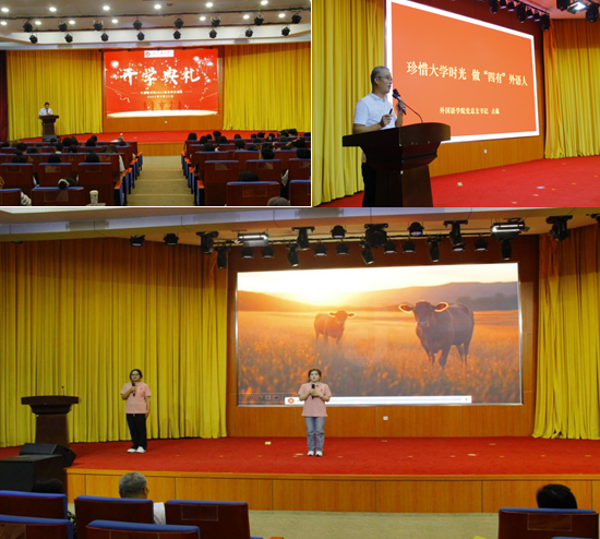 本网消息 金风送爽开学日,万里鹏程由此始。9月22日,外国语学院2024级新生开学典礼在豁度楼208室隆重举行,外国语学院领导班子、专业教师代表、各科室负责人、辅导员及新生班主任等出席,开学典礼由党支部副书记易定国主持。