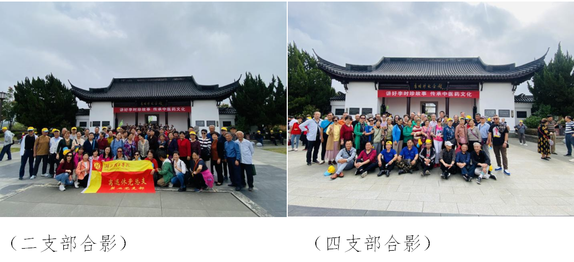 本网消息 花开重阳又一秋,心怀馥郁敬老情。为弘扬中华民族尊老、爱老、敬老的传统美德,丰富学校退休教职工精神文化生活,让退休教职工切实感受到组织的关怀和温暖,10月中下旬,学校组织离退休教职工开展重阳节参观游览活动。在离退休党总支书记、处长程良松,副处长王岩、熊泽敏以及党支部书记、支委的带领下,300余名离退休教职工分批次赴李时珍纪念馆。