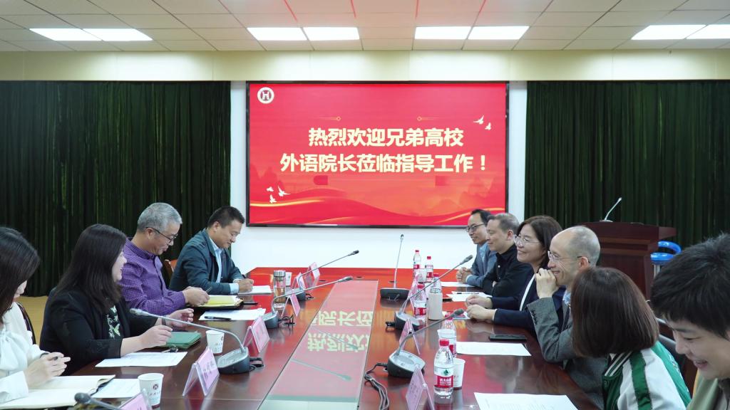 本网消息 10月25日下午,受外国语学院院长张健的邀请,中南民族大学、湖北工业大学等六所省内高校的外国语学院院长齐聚威尼斯官网,参加“外语院长圆桌会”,共同探讨外语学科发展之路。