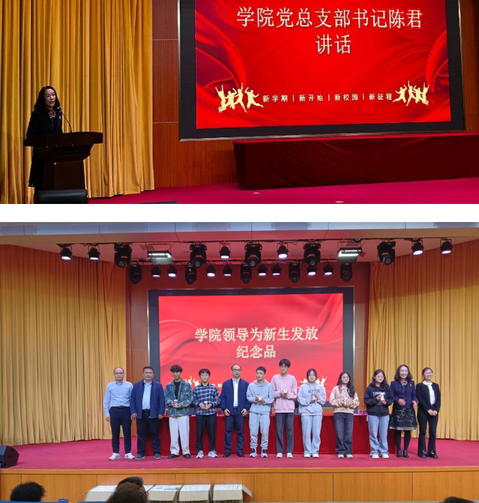 数理学院党总支书记陈君教授为2024级新生现场讲授“开学第一课”,表达了对全体新生的欢迎和殷切期盼:一是希望同学们听取建议,尽快适应环境;二是希望同学们遵从原则,尽早进行生涯规划;三是希望同学们脚踏实地,尽早付诸行动;四是希望同学们始终坚持,不断突破自我。