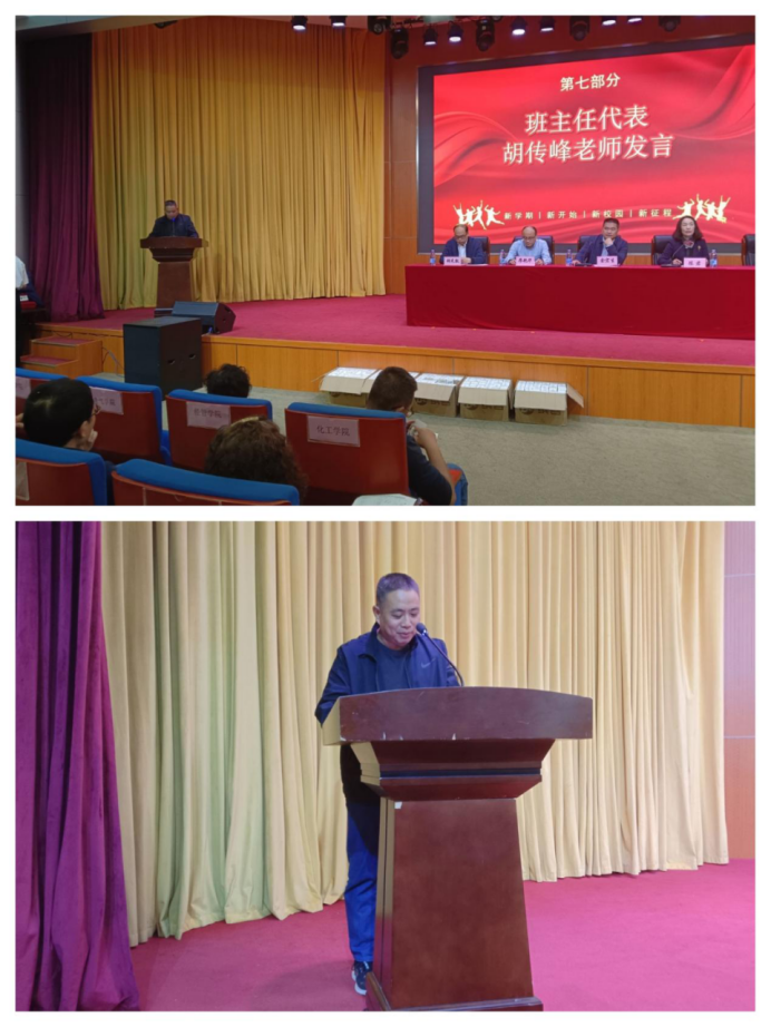 2024级信息与计算科学3班班主任胡传峰老师作为班主任代表发言,寄语新生要“勿以善小而不为,勿以恶小而为之”。胡老师指出,品德是学习之根本,只有拥有正确价值观和道德的学生,才能成为社会和国家的中流砥柱。胡老师阐述了理想的重要性,如同前行路上的照明灯和长途跋涉的干粮,一个有远大理想的人,能走得更远更久。他以数理学院历年努力拼搏的学姐学长为例,希望新生向他们学习,不断提升自己。