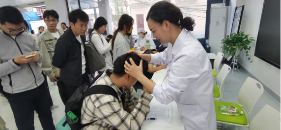 义诊活动现场秩序井然。皮肤科程芳主任细致地问诊,耐心解答困扰同学们的皮肤问题,从专业角度提出了诊疗和保健的意见建议;中医科专家占宝鋆现场问诊、切脉、查体,了解学生健康状况,有针对性地提供预防和治疗建议;口腔科专家团队为学生讲解有关牙齿保健、口腔疾病预防等方面的知识,免费检查牙齿情况,并赠送牙线等小礼品;康复科专家团队为同学们进行体态评估,指导学生健康减脂,示范一些基本的保健体操动作和中医按摩手法,缓解身体的不适感,纠正不良的姿态,改善驼背及高低肩的问题。