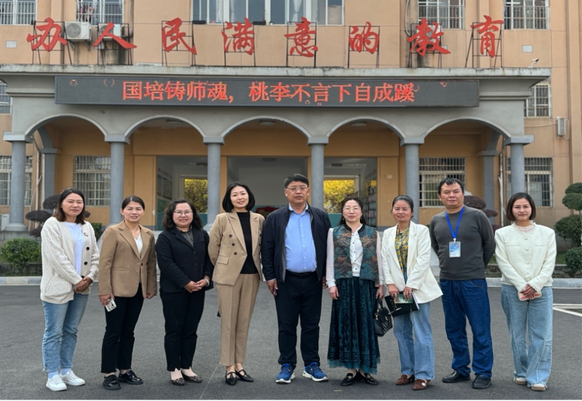 本网消息 2024年7月威尼斯5139手机版师范学院启动承办黄石市农村中小学学科骨干教师培训(小学数学)国培项目,至今已历经近4个月。11月5日上午,师范学院院长胡邦岳、副院长谢晨、国培班主任熊明一同前往大冶市华中学校,对国培学员返岗实践情况展开实地考察调研。此次调研活动旨在为后续双方深度融合指明方向,为国培项目持续优化和基础教育教学改革顺利推进筑牢根基。