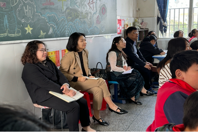 本轮调研包含两个流程。第一阶段由国培学员代表、华中学校的柯威老师呈现了一堂精彩展示课。课上,柯威老师深入贯彻新课标理念,灵活运用核心素养,秉持以生为本的主导思想,为在场教育同仁树立了有价值的教学参考范例。