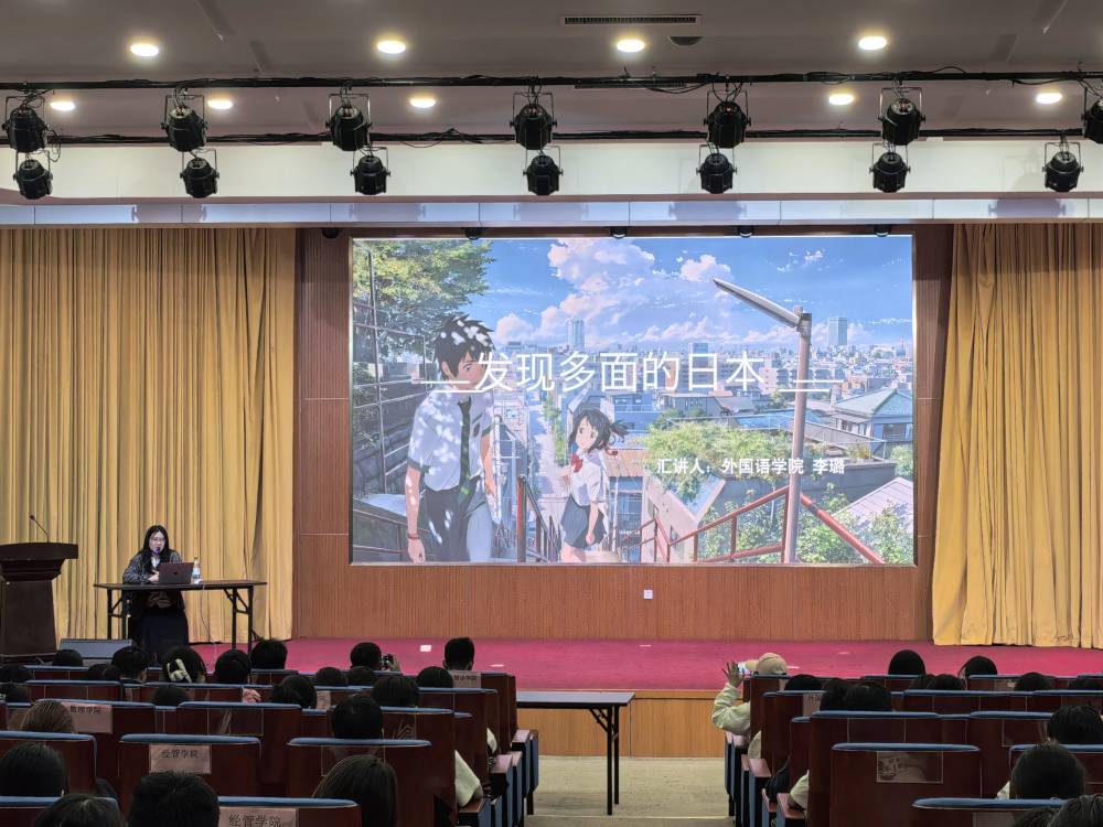 本网消息 11月4日下午,威尼斯5139手机版外国语学院承办的磁湖论坛第二十八讲——“发现多面的日本”文化讲座,在豁度楼208报告厅举行。李璐博士担任主讲人,外国语学院党总支副书记易定国主持,全校300余名学生参加此次活动。
