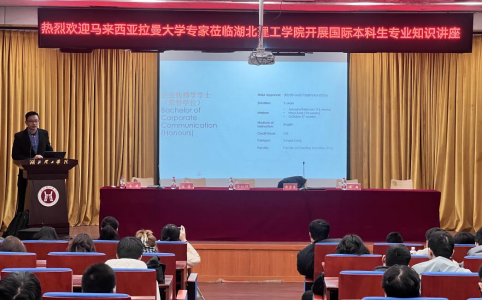 李知鍏教授在豁度楼108开展专业知识的讲座,主要介绍了拉曼大学各教育职能分区的功能特点、创意产业学院的专业和就业情况以及校园生活等。黄宏蕾主要分享了拉曼大学所设专业的考核形式以及学分课程的比例与安排。