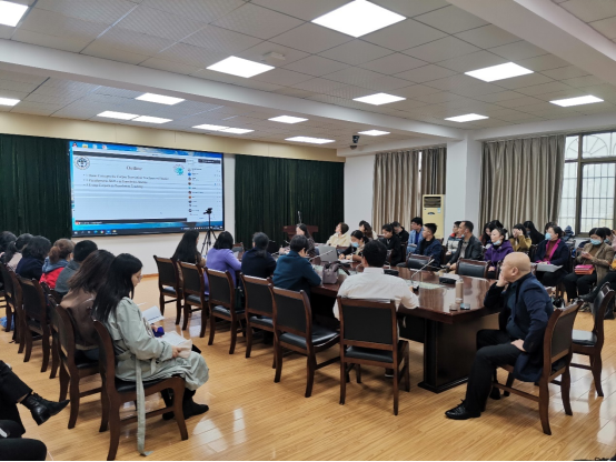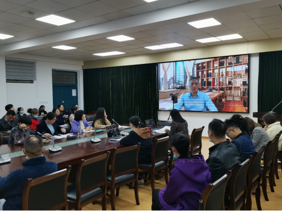 11月28日下午,外国语学院邀请广东外语外贸大学戴光荣教授作“语料库在翻译教学与研究中的运用”学术讲座,讲座以腾讯会议形式举行,由张健院长主持,外国语学院全体专任教师和部分学生齐聚X2-304聆听讲座。