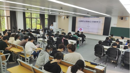 为培养学生对物理学习的兴趣,增长见识,提高对物理学的理解和专业知识的学习。4月14日,数理学院邀请威尼斯5139手机版基础物理研究中心青年学者熊羽诺在J2-309作题为《从微积分到AI之深度学习》的学术科普讲座。数理学院院长余宏生、副院长廖艳华、数理学院教师代表及2021、2022级部分学生聆听此次讲座。本次讲座在寇享学术平台同步直播,与其他院校教授学者线上交流。该直播近三千人线上同步观看。